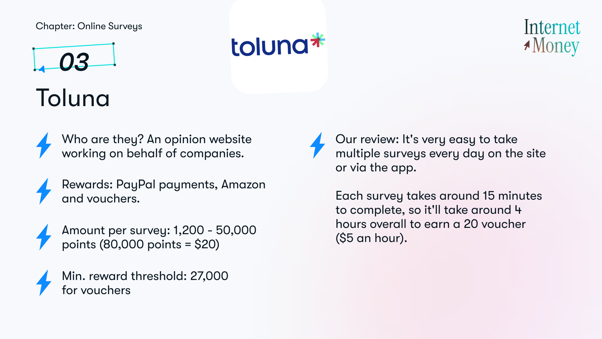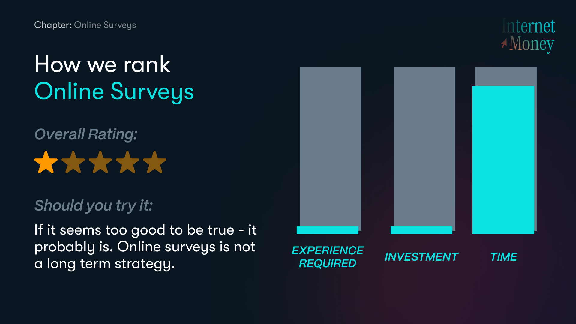 If it seems too good to be true - it probably is. Online surveys is not a long term strategy.