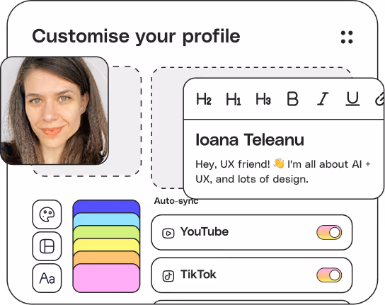 - Auto-sync your latest Instagram, TikTok, or YouTube content.